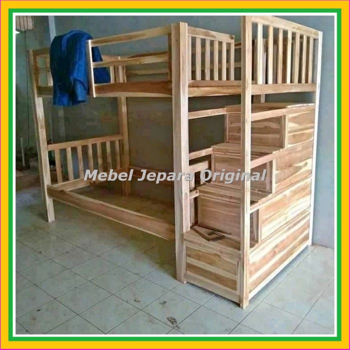 Bunkbed ranjang tempat tidur dipan tingkat susun pake laci buat anak anak bahan kayu jati model simpel minimalis free ongkir, rp4.990.000 ;